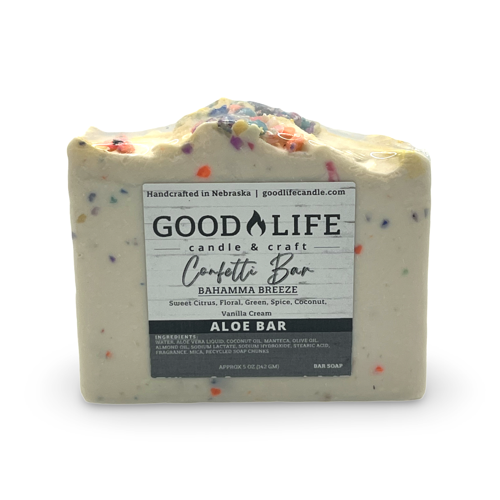 Handmade and in small batches to control quality, our Confetti Bar Soap is packed with nourishing ingredients like Palm Oil, Olive oil & organic virgin coconut oil. Plus the addition of Shea Butter helps nourish and moisturize the skin plus it’s packed with antioxidants!