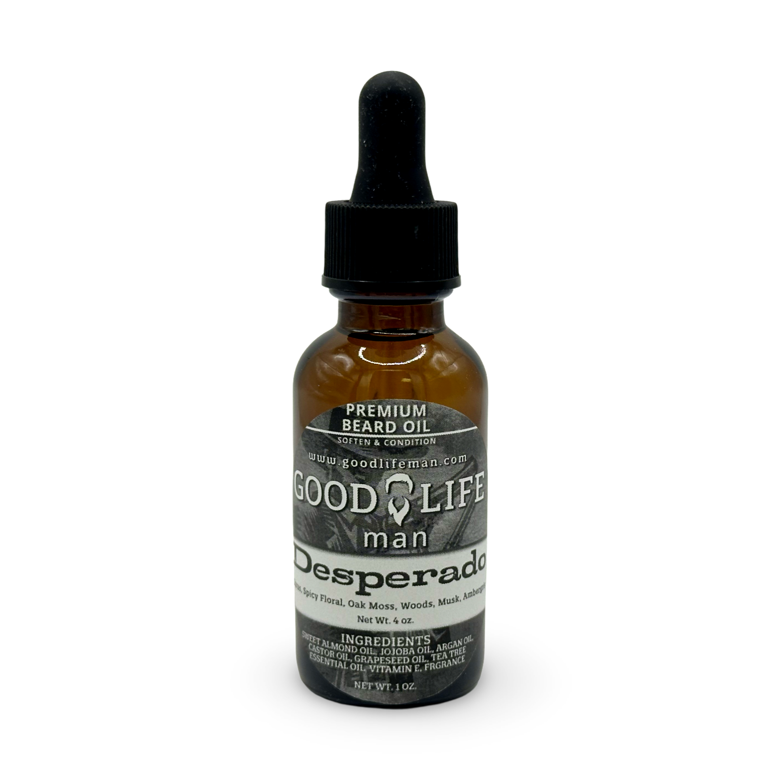 Introducing Good Life Man Beard Oil, the perfect blend of sunflower oil, jojoba oil, argan oil, castor oil, vitamin e, & tea tree essential oil to help condition your beard. Achieve full hydration and softer hair with this premium product, so you can look and feel your best every day. Ready to experience the good life?